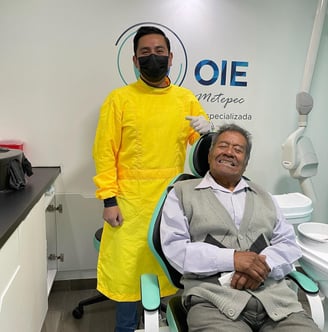 Aldo Ruiz ha estado con nosotros en OIE Metepec durante casi seis años y es uno de los favoritos entre nuestros pacientes. Aunque su experiencia es en cirugía dental de emergencia, se ha convertido en un experto en operaciones estéticas y prótesis dentales.